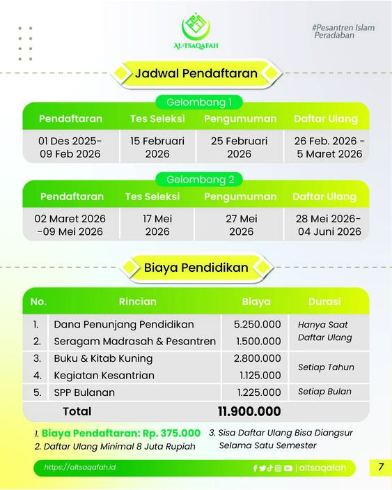 Registrasi pendaftaran Rp. 375.000, melalui rek BNI. 2014888393 A/N PONDOK PESANTREN LUHUR AL TSAQAFAH